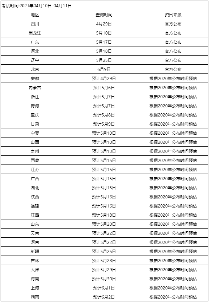 本次考试成绩预计在2021年5月17日左右公布,届时考生可通过自学考试管理系统查询合格成绩,或者通过省教育考试院官方微信小程序查询全部考试成绩,具体安排请留意省教育考试院官方网站相关信息。